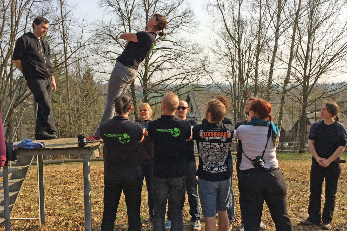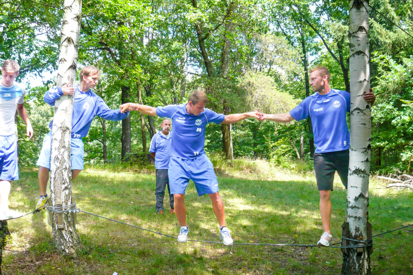Los geht’s mit spannenden Kooperationsaufgaben am Boden – zum Beispiel an der Teamwippe, im Mohawkwalk, beim Spinnennetz oder Trust Fall. Hier sind Teamgeist, Vertrauen und Kommunikation gefragt.